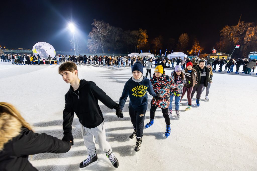 Az este tetőpontján a tömeg a jégre lépett, hogy valami egészen különlegeset hozzon létre: 695 korcsolyázó alkotott egyetlen, több száz méteren kígyózó, összekapcsolt emberláncot, amely új, hitelesített magyar rekordot jelent az „együtt korcsolyázás” kategóriájában. Az új magyar rekord meghaladja a jelenlegi 395 fős létszámot, amit egy igazán „jégre termett” országban, Kanadában jegyeztek fel.